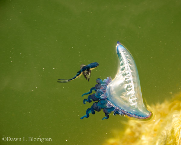 Portuguese man o’ war, often mistaken as a jellyfish, lives at the surface of the ocean.Its venomous tentacles can deliver a painful sting.